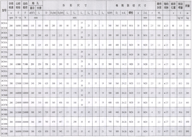 DC系列卷筒用鼓形齒式聯軸器主要參數及尺寸