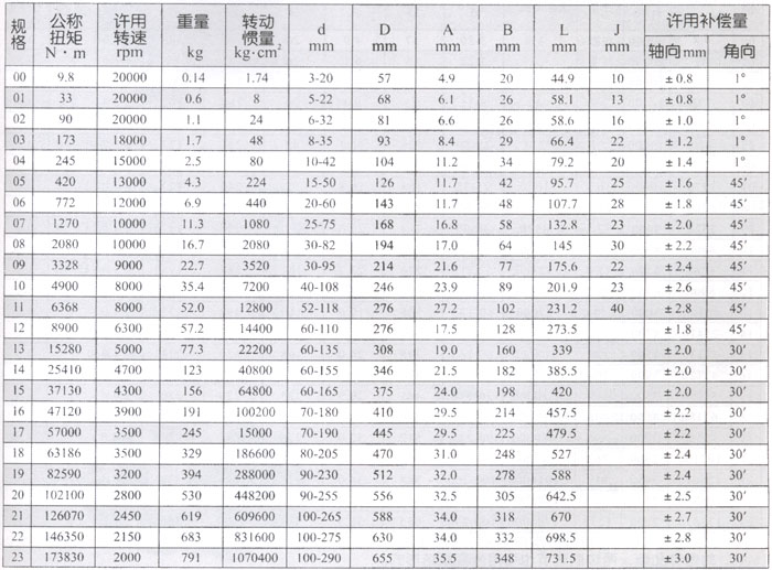 DJM型鍵聯(lián)結(jié)雙型彈性膜片聯(lián)軸器主要參數(shù)及尺寸